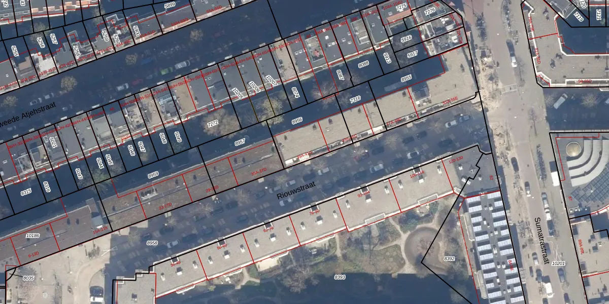 Het perceel waarop Riouwstraat 41-D staat heeft een oppervlakte van 416 m². Dit is een groot perceel. De perceeloppervlakte wordt geregistreerd door het Kadaster. Gedetailleerde informatie over de maten van dit perceel kunt u vinden in het rapport Kadastrale kaart met maatvoering van Riouwstraat 41-D.