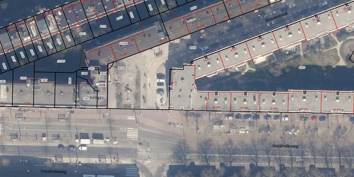 Riouwstraat 6 is gelegen op kadastraal perceel ASD15S8393. Deze kadastrale aanduiding is uniek en wordt gebruikt door het Kadaster om eigendomsrechten en andere zakelijke rechten vast te leggen. Het perceel maakt onderdeel uit van de kadastrale gemeente Amsterdam.