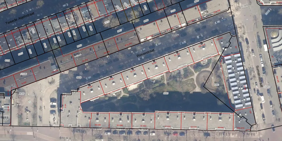 Het perceel waarop Riouwstraat 68 staat heeft een oppervlakte van 5255 m². Dit is een zeer groot perceel. De perceeloppervlakte wordt geregistreerd door het Kadaster. Gedetailleerde informatie over de maten van dit perceel kunt u vinden in het rapport Kadastrale kaart met maatvoering van Riouwstraat 68.