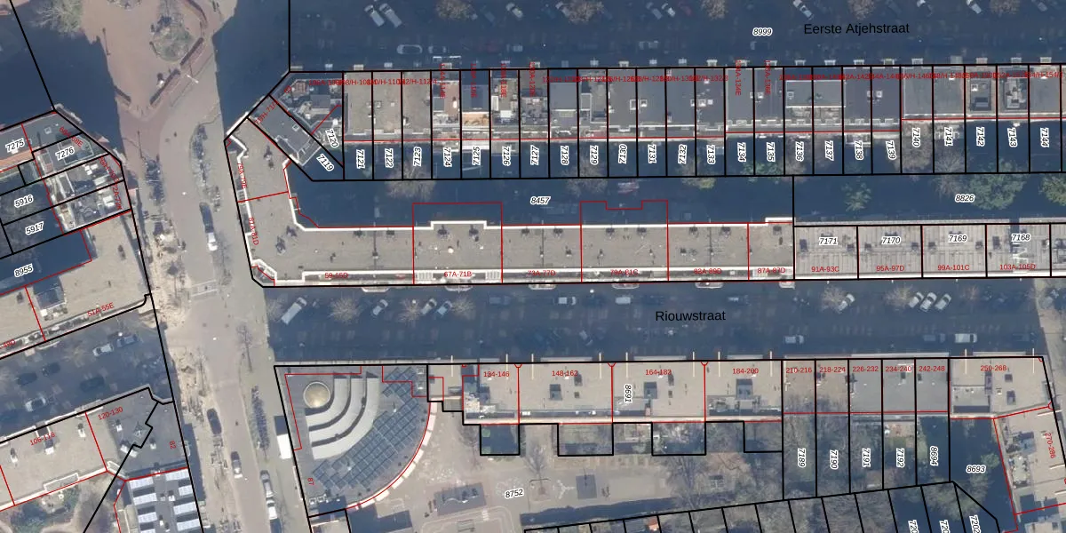 Riouwstraat 73-D is gelegen op kadastraal perceel ASD15S8457. Deze kadastrale aanduiding is uniek en wordt gebruikt door het Kadaster om eigendomsrechten en andere zakelijke rechten vast te leggen. Het perceel maakt onderdeel uit van de kadastrale gemeente Amsterdam.