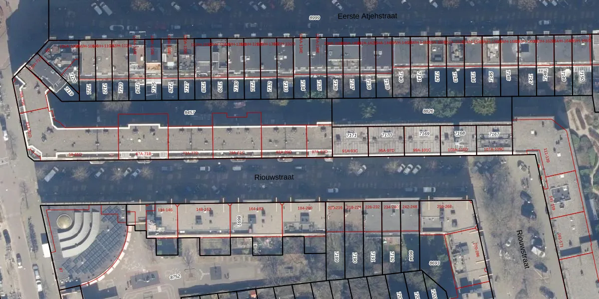 Het perceel waarop Riouwstraat 85-A staat heeft een oppervlakte van 2181 m². Dit is een zeer groot perceel. De perceeloppervlakte wordt geregistreerd door het Kadaster. Gedetailleerde informatie over de maten van dit perceel kunt u vinden in het rapport Kadastrale kaart met maatvoering van Riouwstraat 85-A.