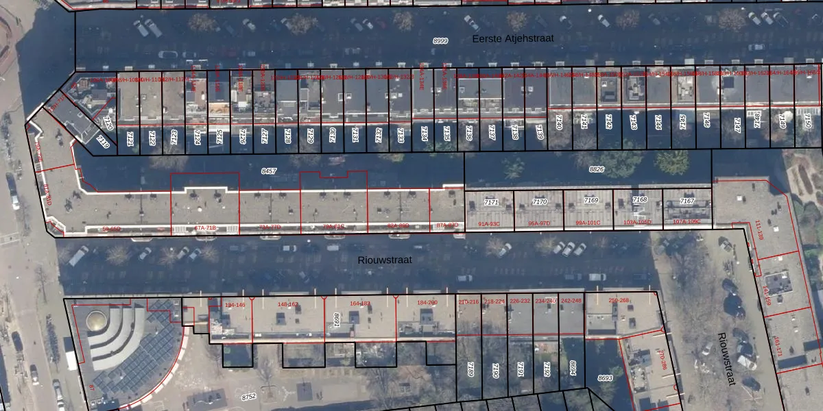 Het perceel waarop Riouwstraat 89-B staat heeft een oppervlakte van 2181 m². Dit is een zeer groot perceel. De perceeloppervlakte wordt geregistreerd door het Kadaster. Gedetailleerde informatie over de maten van dit perceel kunt u vinden in het rapport Kadastrale kaart met maatvoering van Riouwstraat 89-B.