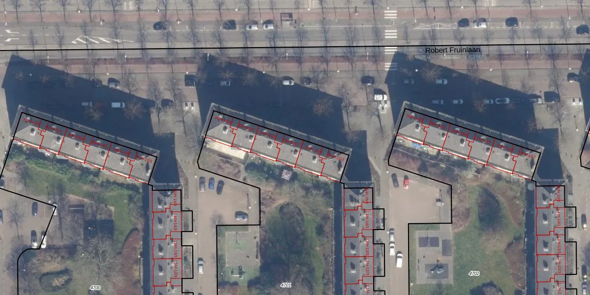 Robert Fruinlaan 23-1 is gelegen op kadastraal perceel STN02D4701. Deze kadastrale aanduiding is uniek en wordt gebruikt door het Kadaster om eigendomsrechten en andere zakelijke rechten vast te leggen. Het perceel maakt onderdeel uit van de kadastrale gemeente Sloten Noord-Holland.