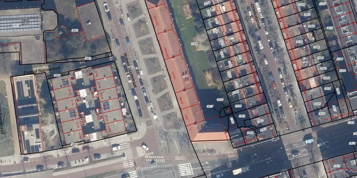 Het perceel waarop Robert Scottstraat 12 staat heeft een oppervlakte van 2448 m². Dit is een zeer groot perceel. De perceeloppervlakte wordt geregistreerd door het Kadaster. Gedetailleerde informatie over de maten van dit perceel kunt u vinden in het rapport Kadastrale kaart met maatvoering van Robert Scottstraat 12.