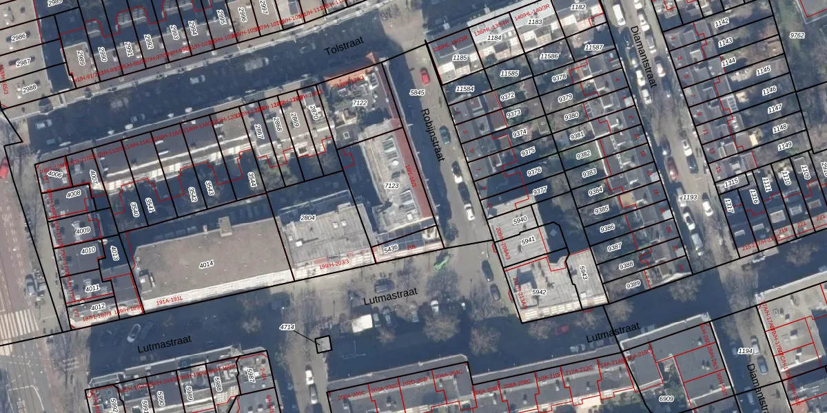 Het perceel waarop het adres ligt is ASD18-V-7123. De afkorting 'ASD18' staat voor kadastrale gemeente Amsterdam. De gemiddelde perceelgrootte in Amsterdam is 559,23 m². Dit perceel is kleiner: de perceeloppervlakte bedraagt 414 m². Het kleinste perceel in de kadastrale gemeente is 0 m² groot. De grootste perceeloppervlakte is 12,5 ha. Op het perceel liggen in totaal 12 adressen. De huidige grenzen van het perceel zijn digitaal in de Basisregistratie Kadaster (BRK) geregistreerd op 17-10-2006.