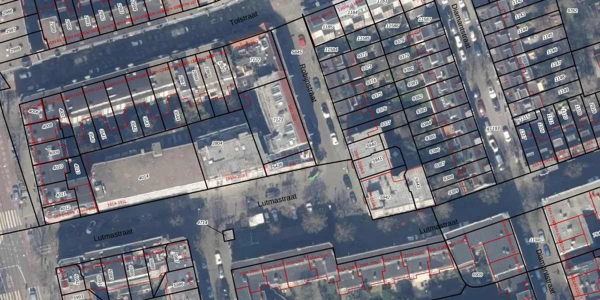 Het perceel waarop het adres ligt is ASD18-V-7123. De afkorting 'ASD18' staat voor kadastrale gemeente Amsterdam. De gemiddelde perceelgrootte in Amsterdam is 559,23 m². Dit perceel is kleiner: de perceeloppervlakte bedraagt 414 m². Het kleinste perceel in de kadastrale gemeente is 0 m² groot. De grootste perceeloppervlakte is 12,5 ha. Op het perceel liggen in totaal 12 adressen. De laatste wijziging in het de Basisregistratie Kadaster (BRK) was op 17-10-2006.