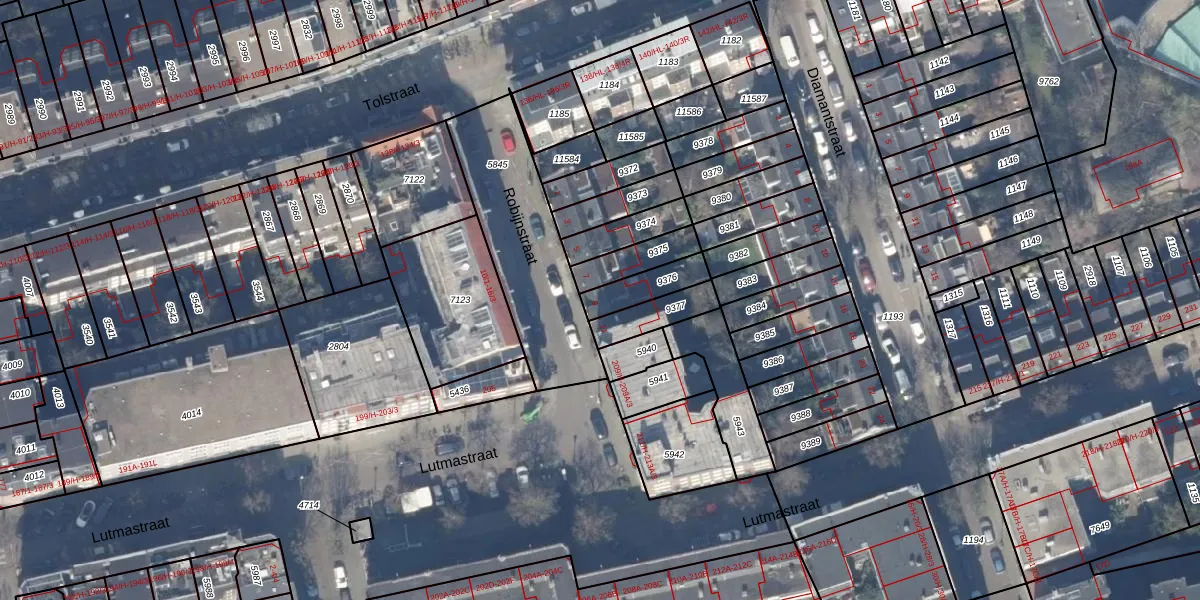 Gebruik de zoekbalk of klik op een perceel voor informatie over de adressen binnen dit perceel.