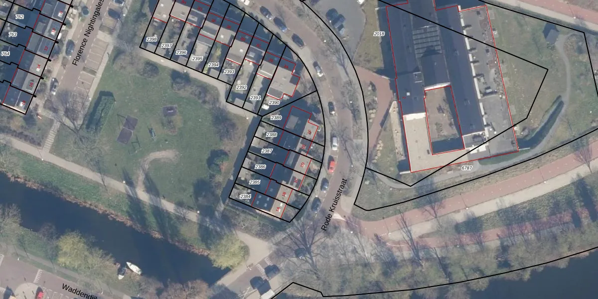 Gebruik de zoekbalk of klik op een perceel voor informatie over de adressen binnen dit perceel.