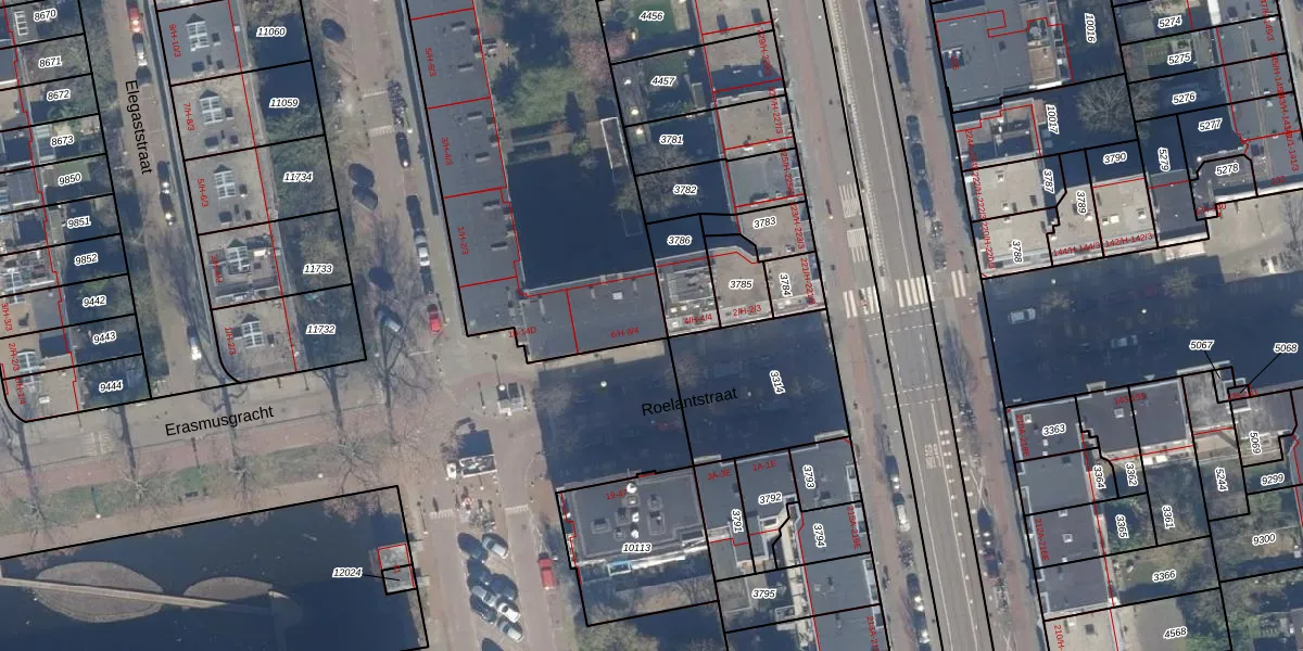 Het perceel waarop Roelantstraat 6-H staat heeft een oppervlakte van 4913 m². Dit is een zeer groot perceel. De perceeloppervlakte wordt geregistreerd door het Kadaster. Gedetailleerde informatie over de maten van dit perceel kunt u vinden in het rapport Kadastrale kaart met maatvoering van Roelantstraat 6-H.