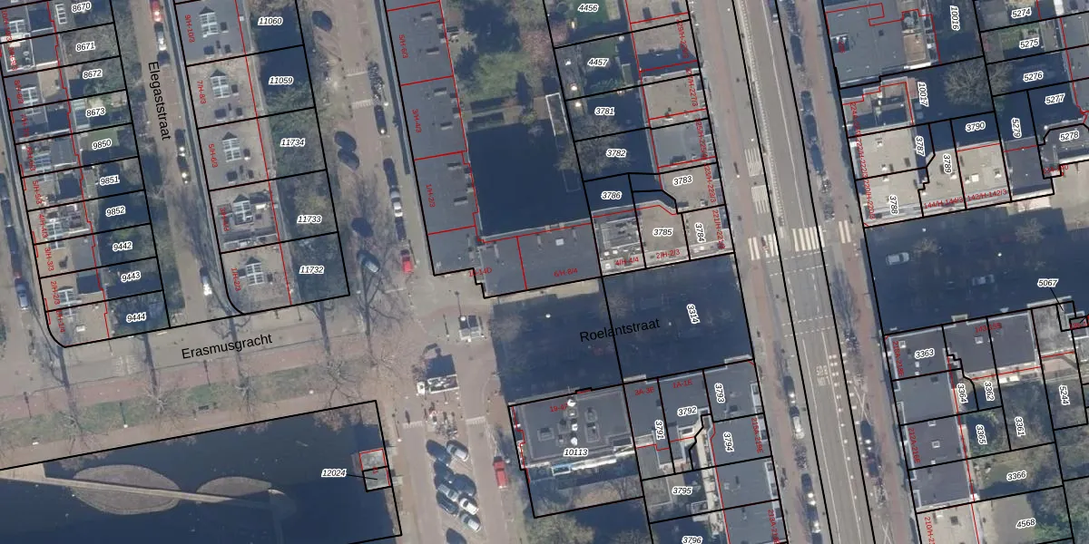 Het perceel waarop Roelantstraat 8-H staat heeft een oppervlakte van 4913 m². Dit is een zeer groot perceel. De perceeloppervlakte wordt geregistreerd door het Kadaster. Gedetailleerde informatie over de maten van dit perceel kunt u vinden in het rapport Kadastrale kaart met maatvoering van Roelantstraat 8-H.