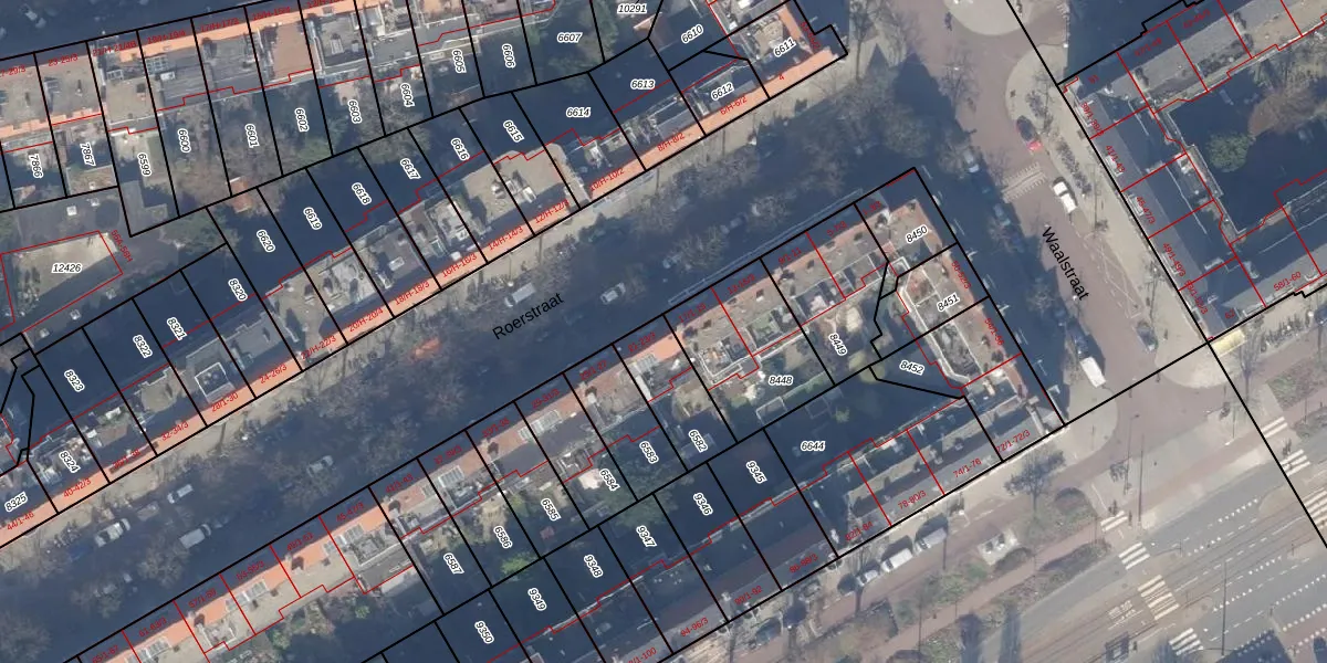 Roerstraat 21 is gelegen op kadastraal perceel ASD18V6582. Deze kadastrale aanduiding is uniek en wordt gebruikt door het Kadaster om eigendomsrechten en andere zakelijke rechten vast te leggen. Het perceel maakt onderdeel uit van de kadastrale gemeente Amsterdam.