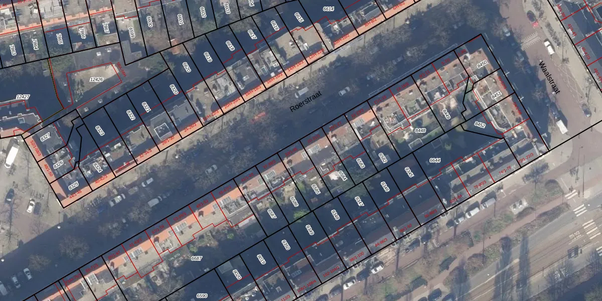 Roerstraat 33-1 is gelegen op kadastraal perceel ASD18V6585. Deze kadastrale aanduiding is uniek en wordt gebruikt door het Kadaster om eigendomsrechten en andere zakelijke rechten vast te leggen. Het perceel maakt onderdeel uit van de kadastrale gemeente Amsterdam.