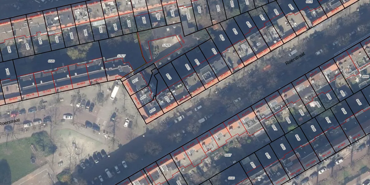Roerstraat 36-2 is gelegen op kadastraal perceel ASD18V8323. Deze kadastrale aanduiding is uniek en wordt gebruikt door het Kadaster om eigendomsrechten en andere zakelijke rechten vast te leggen. Het perceel maakt onderdeel uit van de kadastrale gemeente Amsterdam.