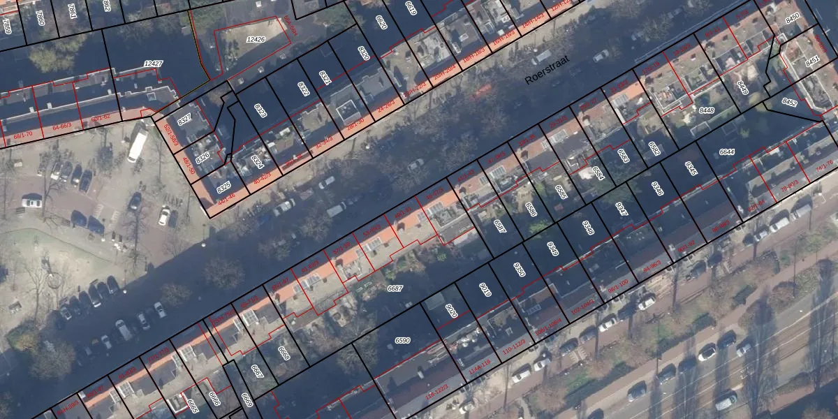 Roerstraat 49-3 is gelegen op kadastraal perceel ASD18V6687. Deze kadastrale aanduiding is uniek en wordt gebruikt door het Kadaster om eigendomsrechten en andere zakelijke rechten vast te leggen. Het perceel maakt onderdeel uit van de kadastrale gemeente Amsterdam.