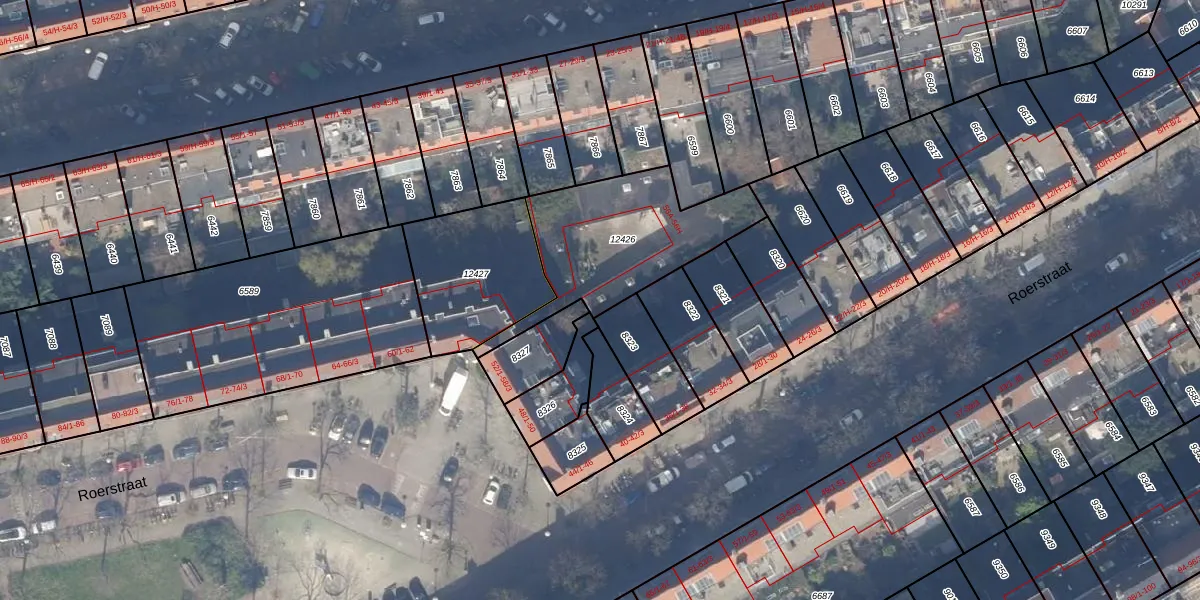 Het perceel waarop Roerstraat 56-H staat heeft een oppervlakte van 582 m². Dit is een groot perceel. De perceeloppervlakte wordt geregistreerd door het Kadaster. Gedetailleerde informatie over de maten van dit perceel kunt u vinden in het rapport Kadastrale kaart met maatvoering van Roerstraat 56-H.