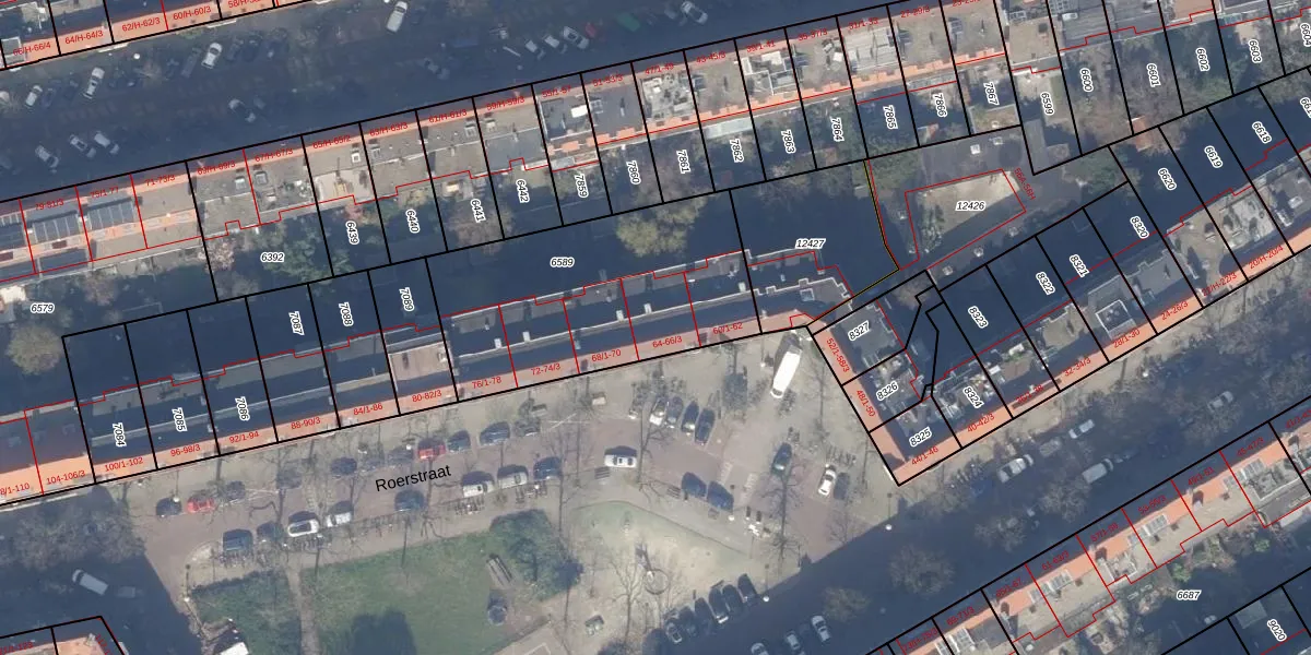 Roerstraat 66-1 is gelegen op kadastraal perceel ASD18V6589. Deze kadastrale aanduiding is uniek en wordt gebruikt door het Kadaster om eigendomsrechten en andere zakelijke rechten vast te leggen. Het perceel maakt onderdeel uit van de kadastrale gemeente Amsterdam.