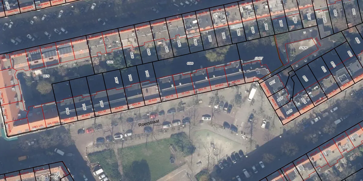 Het perceel waarop Roerstraat 74-3 staat heeft een oppervlakte van 1069 m². Dit is een zeer groot perceel. De perceeloppervlakte wordt geregistreerd door het Kadaster. Gedetailleerde informatie over de maten van dit perceel kunt u vinden in het rapport Kadastrale kaart met maatvoering van Roerstraat 74-3.