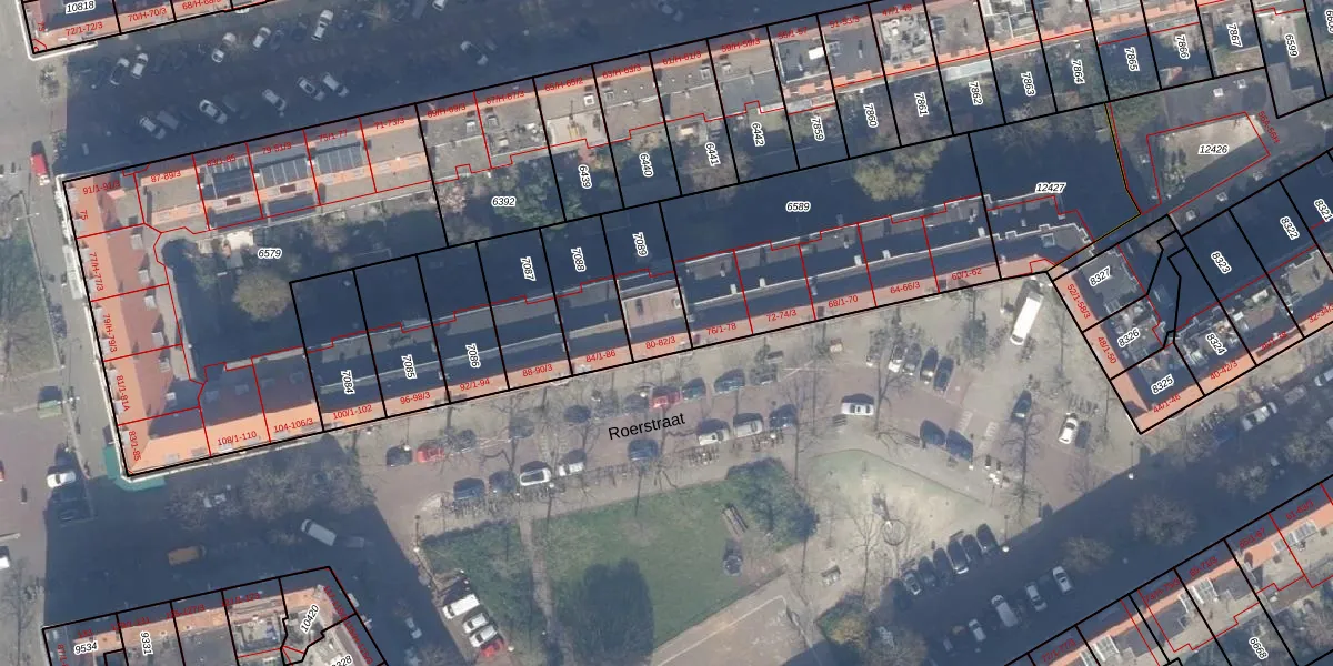 Roerstraat 80 is gelegen op kadastraal perceel ASD18V7089. Deze kadastrale aanduiding is uniek en wordt gebruikt door het Kadaster om eigendomsrechten en andere zakelijke rechten vast te leggen. Het perceel maakt onderdeel uit van de kadastrale gemeente Amsterdam.
