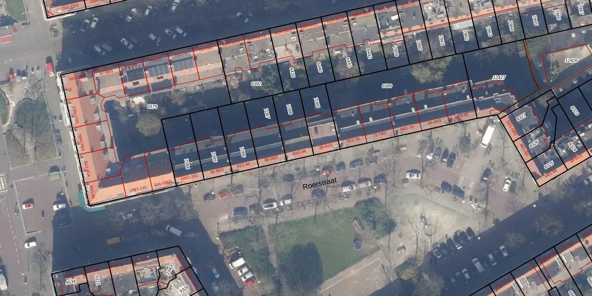 Roerstraat 86 is gelegen op kadastraal perceel ASD18V7088. Deze kadastrale aanduiding is uniek en wordt gebruikt door het Kadaster om eigendomsrechten en andere zakelijke rechten vast te leggen. Het perceel maakt onderdeel uit van de kadastrale gemeente Amsterdam.