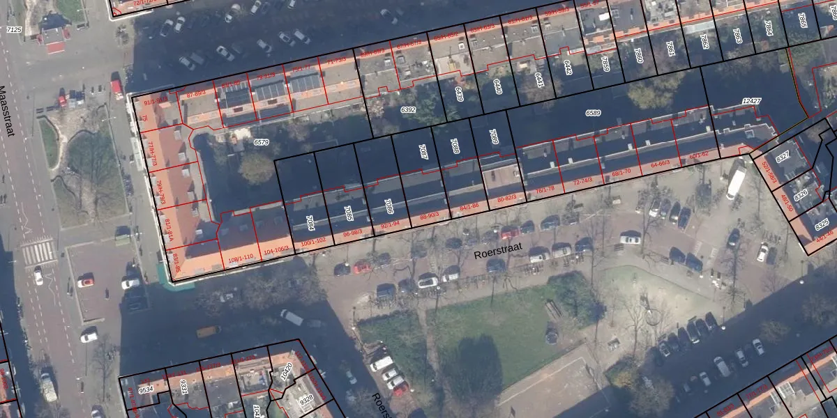 Roerstraat 90-3 is gelegen op kadastraal perceel ASD18V7087. Deze kadastrale aanduiding is uniek en wordt gebruikt door het Kadaster om eigendomsrechten en andere zakelijke rechten vast te leggen. Het perceel maakt onderdeel uit van de kadastrale gemeente Amsterdam.