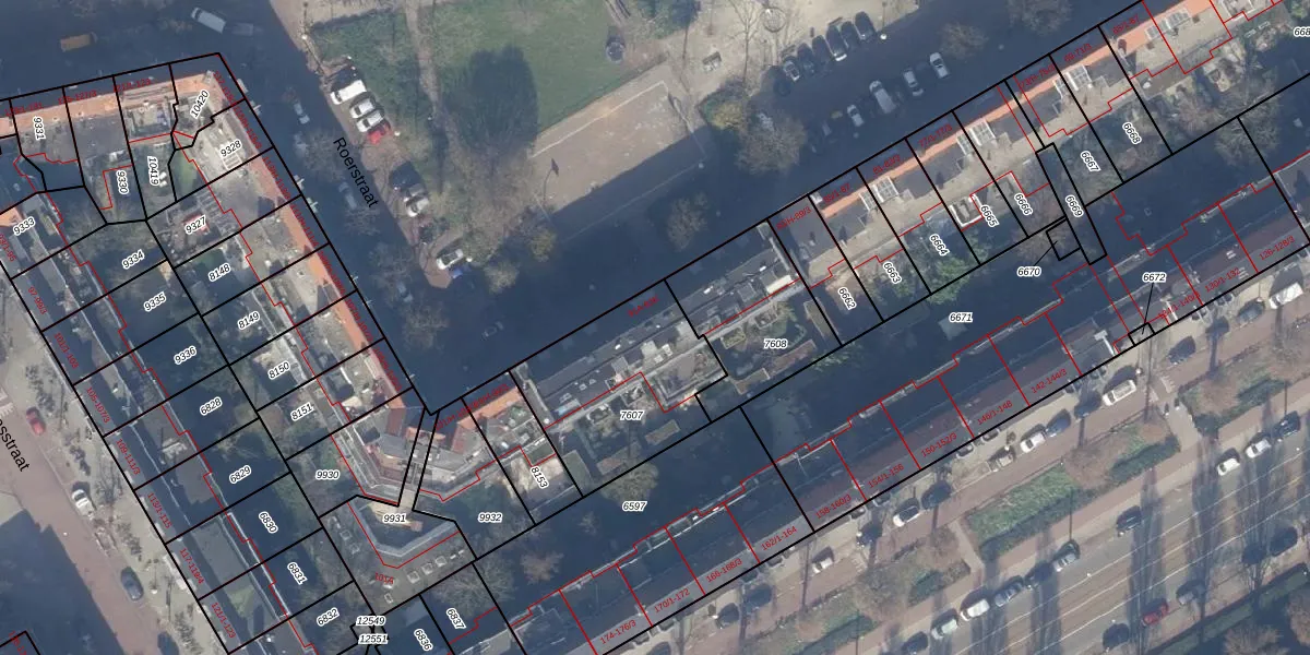 Het perceel waarop Roerstraat 91-F staat heeft een oppervlakte van 597 m². Dit is een groot perceel. De perceeloppervlakte wordt geregistreerd door het Kadaster. Gedetailleerde informatie over de maten van dit perceel kunt u vinden in het rapport Kadastrale kaart met maatvoering van Roerstraat 91-F.