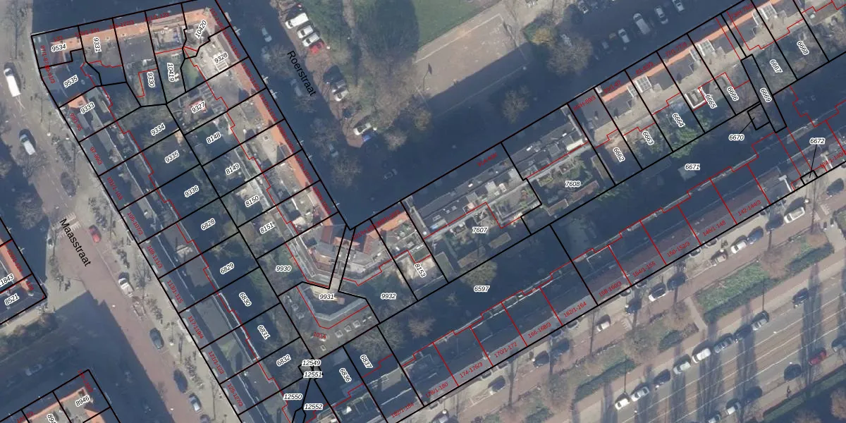 Het perceel waarop Roerstraat 93-A staat heeft een oppervlakte van 597 m². Dit is een groot perceel. De perceeloppervlakte wordt geregistreerd door het Kadaster. Gedetailleerde informatie over de maten van dit perceel kunt u vinden in het rapport Kadastrale kaart met maatvoering van Roerstraat 93-A.