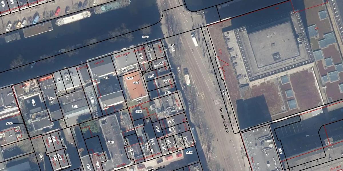 Roetersstraat 154 is gelegen op kadastraal perceel ASD11O3418. Deze kadastrale aanduiding is uniek en wordt gebruikt door het Kadaster om eigendomsrechten en andere zakelijke rechten vast te leggen. Het perceel maakt onderdeel uit van de kadastrale gemeente Amsterdam.