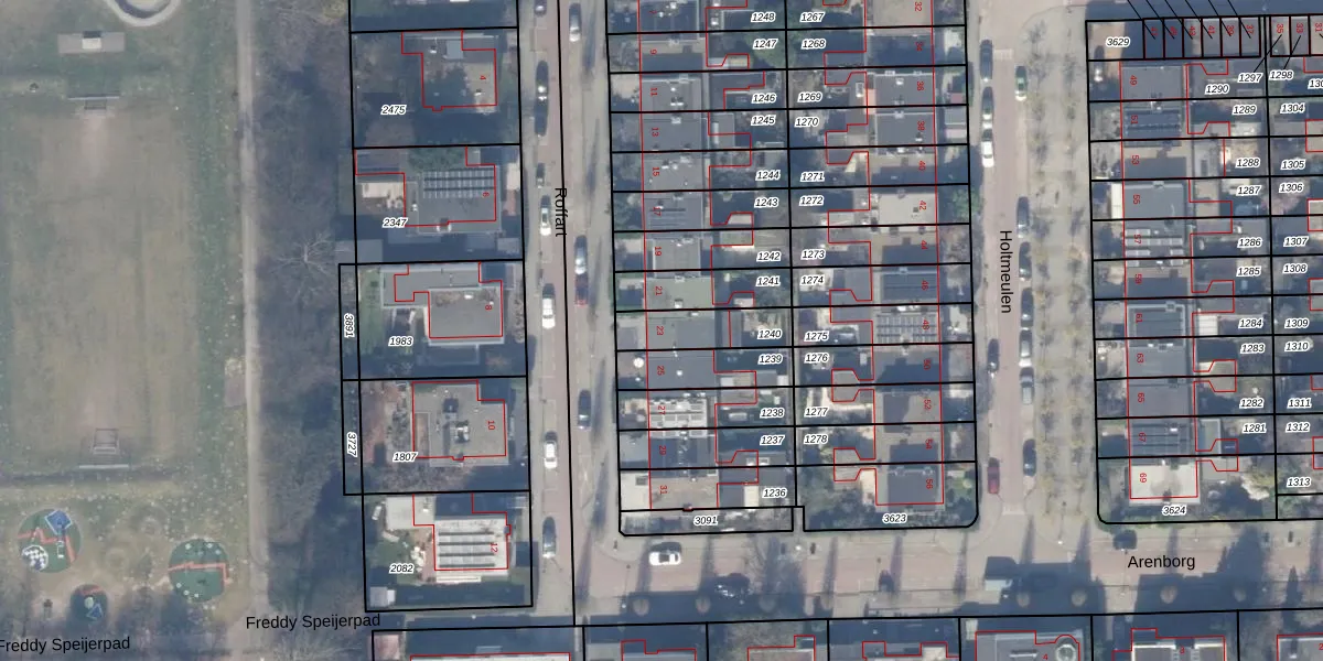 Het perceel waarop Roffart 23 staat heeft een oppervlakte van 162 m². Dit is een middelgroot perceel. De perceeloppervlakte wordt geregistreerd door het Kadaster. Gedetailleerde informatie over de maten van dit perceel kunt u vinden in het rapport Kadastrale kaart met maatvoering van Roffart 23.