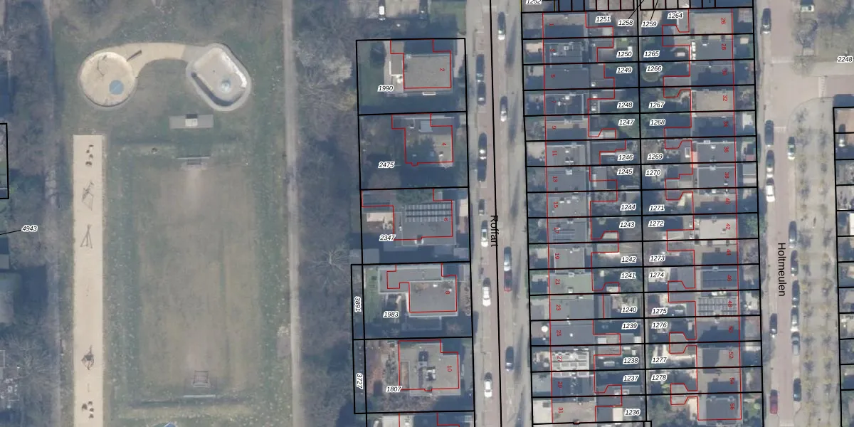 Gebruik de zoekbalk of klik op een perceel voor informatie over de adressen binnen dit perceel.