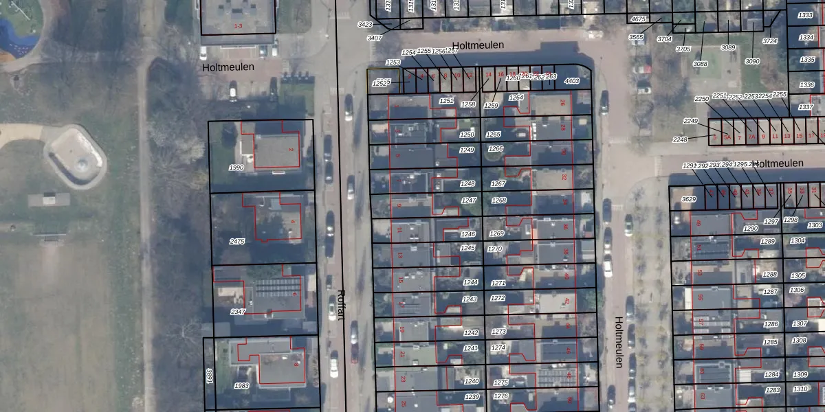 Gebruik de zoekbalk of klik op een perceel voor informatie over de adressen binnen dit perceel.