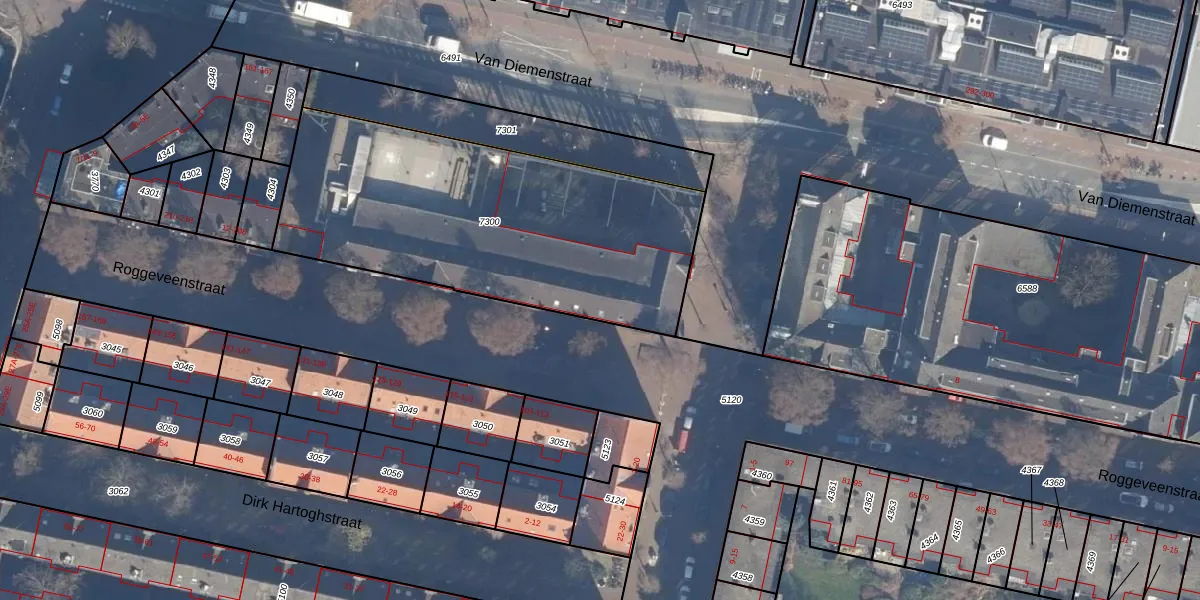 Het perceel waarop het adres ligt is ASD09-M-7300. De afkorting 'ASD09' staat voor kadastrale gemeente Amsterdam. De oppervlakte van het perceel is 1689 m². Dat is groter dan gemiddeld in Amsterdam, waar de gemiddelde perceeloppervlakte op 550,83 m² ligt. Het grootste perceel in de kadastrale gemeente is 14,3 ha. Het kleinste perceel heeft een oppervlakte van 1 m². Op het perceel liggen in totaal 2 adressen. In de Basisregistratie Kadaster (BRK) werden de grenzen van het perceel geregistreerd op 08-09-2017.