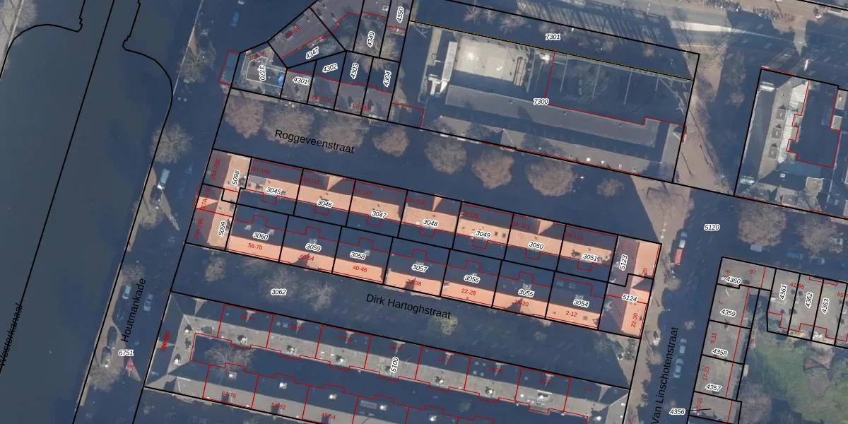 Het perceel waarop het adres ligt is ASD09-M-3048. De afkorting 'ASD09' staat voor kadastrale gemeente Amsterdam. Het perceel is 146 m² groot. Dat is kleiner dan de gemiddelde perceeloppervlakte in Amsterdam, dat op 550,83 m² ligt. Het kleinste perceel in de kadastrale gemeente is 1 m² groot. De grootste perceeloppervlakte is 14,3 ha. Er zijn 5 adressen aanwezig op het perceel. De huidige grenzen van het perceel zijn digitaal in de Basisregistratie Kadaster (BRK) geregistreerd op 30-11-2006.