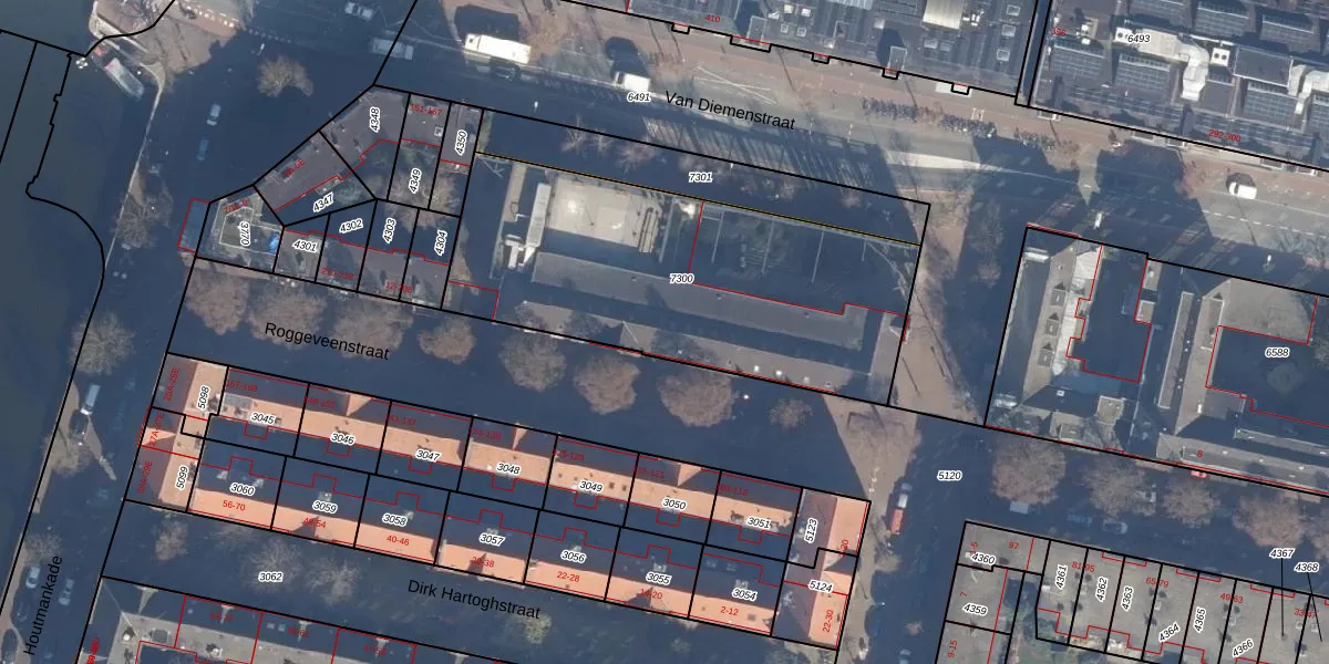 Het perceel waarop het adres ligt is ASD09-M-7300. De afkorting 'ASD09' staat voor kadastrale gemeente Amsterdam. De oppervlakte van het perceel is 1689 m². Dat is groter dan gemiddeld in Amsterdam, waar de gemiddelde perceeloppervlakte op 550,83 m² ligt. Het grootste perceel in de kadastrale gemeente is 14,3 ha. Het kleinste perceel heeft een oppervlakte van 1 m². Er zijn 2 adressen aanwezig op het perceel. De laatste wijziging in het de Basisregistratie Kadaster (BRK) was op 08-09-2017.