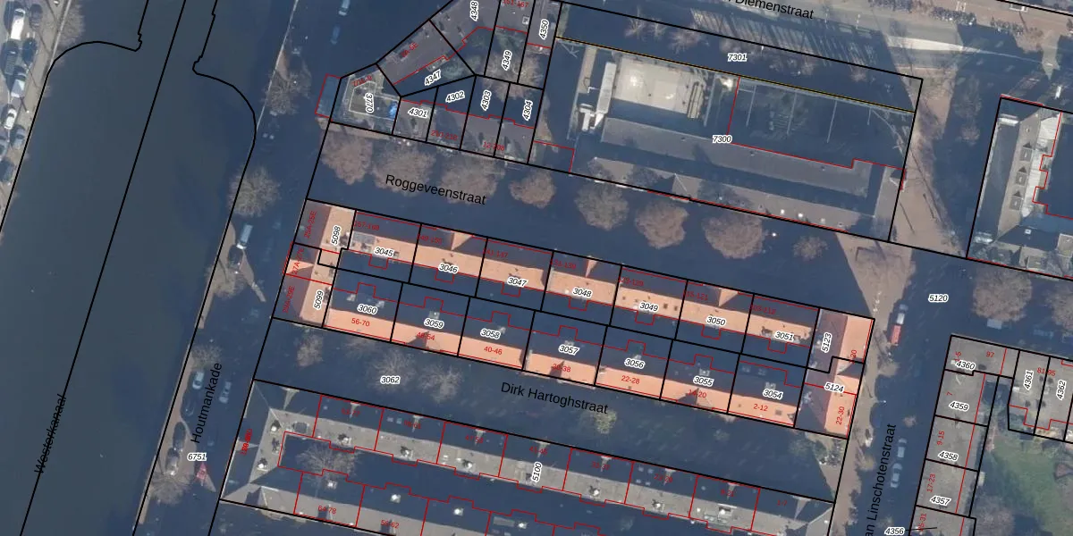 Het perceel waarop het adres ligt is ASD09-M-3047. De afkorting 'ASD09' staat voor kadastrale gemeente Amsterdam. Het perceel is 145 m² groot. Dat is kleiner dan de gemiddelde perceeloppervlakte in Amsterdam, dat op 550,83 m² ligt. Het kleinste perceel in de kadastrale gemeente is 1 m² groot. De grootste perceeloppervlakte is 14,3 ha. Er zijn 4 adressen aanwezig op het perceel. In de Basisregistratie Kadaster (BRK) werden de grenzen van het perceel geregistreerd op 30-11-2006.