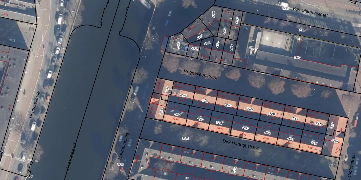 Het perceel waarop het adres ligt is ASD09-M-3045. De afkorting 'ASD09' staat voor kadastrale gemeente Amsterdam. Het perceel is 149 m² groot. Dat is kleiner dan de gemiddelde perceeloppervlakte in Amsterdam, dat op 550,83 m² ligt. Het kleinste perceel in de kadastrale gemeente is 1 m² groot. De grootste perceeloppervlakte is 14,3 ha. Op het perceel zijn 7 adressen aanwezig. De huidige grenzen van het perceel zijn digitaal in de Basisregistratie Kadaster (BRK) geregistreerd op 30-11-2006.