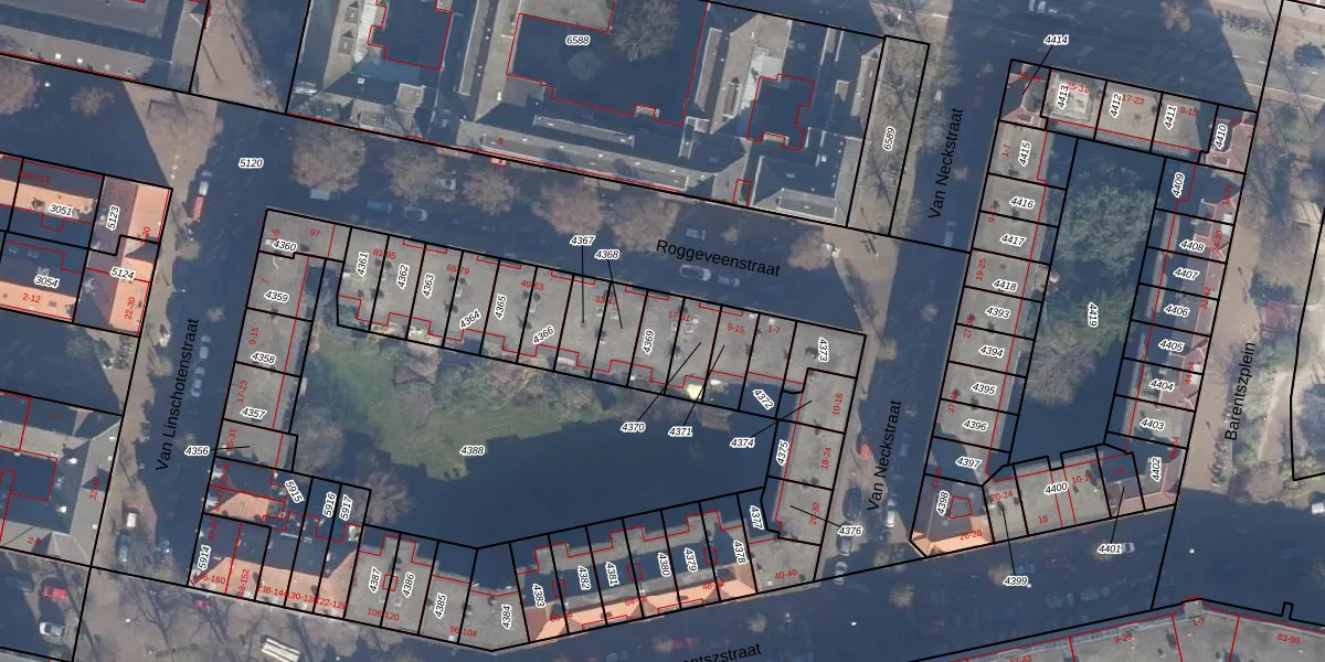 Roggeveenstraat 25 is gelegen op kadastraal perceel ASD09M4369. Deze kadastrale aanduiding is uniek en wordt gebruikt door het Kadaster om eigendomsrechten en andere zakelijke rechten vast te leggen. Het perceel maakt onderdeel uit van de kadastrale gemeente Amsterdam.