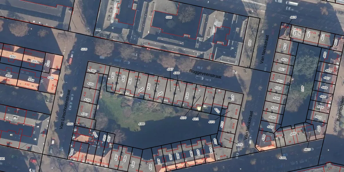 Het perceel waarop Roggeveenstraat 39 staat heeft een oppervlakte van 86 m². Dit is een klein perceel. De perceeloppervlakte wordt geregistreerd door het Kadaster. Gedetailleerde informatie over de maten van dit perceel kunt u vinden in het rapport Kadastrale kaart met maatvoering van Roggeveenstraat 39.