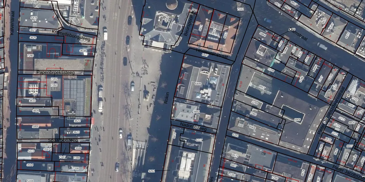 Het perceel waarop Rokin 15 staat heeft een oppervlakte van 643 m². Dit is een groot perceel. De perceeloppervlakte wordt geregistreerd door het Kadaster. Gedetailleerde informatie over de maten van dit perceel kunt u vinden in het rapport Kadastrale kaart met maatvoering van Rokin 15.
