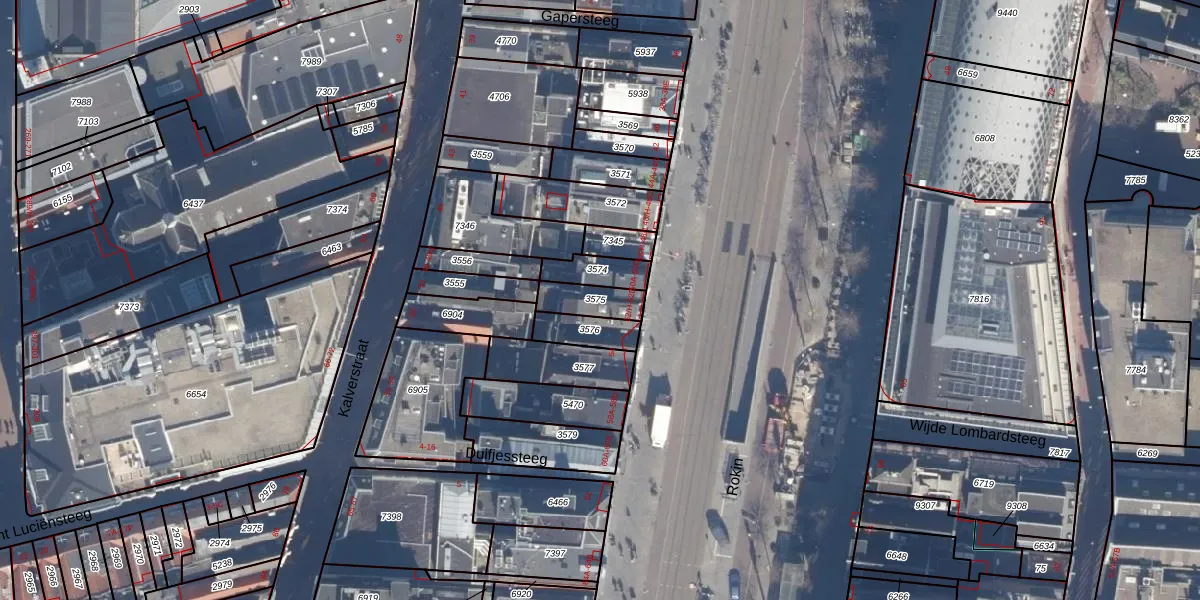 Het perceel waarop Rokin 52-H staat heeft een oppervlakte van 81 m². Dit is een klein perceel. De perceeloppervlakte wordt geregistreerd door het Kadaster. Gedetailleerde informatie over de maten van dit perceel kunt u vinden in het rapport Kadastrale kaart met maatvoering van Rokin 52-H.