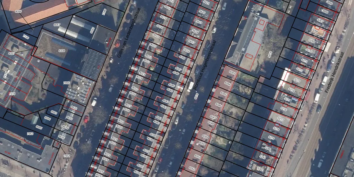 Het perceel waarop het adres ligt is ASD13-Q-4045. De afkorting 'ASD13' staat voor kadastrale gemeente Amsterdam. Het perceel is kleiner dan gemiddeld in Amsterdam. Het perceel is 79 m² groot, terwijl het gemiddelde ligt op 393,94 m². Het grootste perceel in de kadastrale gemeente is 6,2 ha. Het kleinste perceel heeft een oppervlakte van 1 m². Op het perceel zijn 4 adressen aanwezig. De laatste wijziging in het de Basisregistratie Kadaster (BRK) was op 23-01-2007.