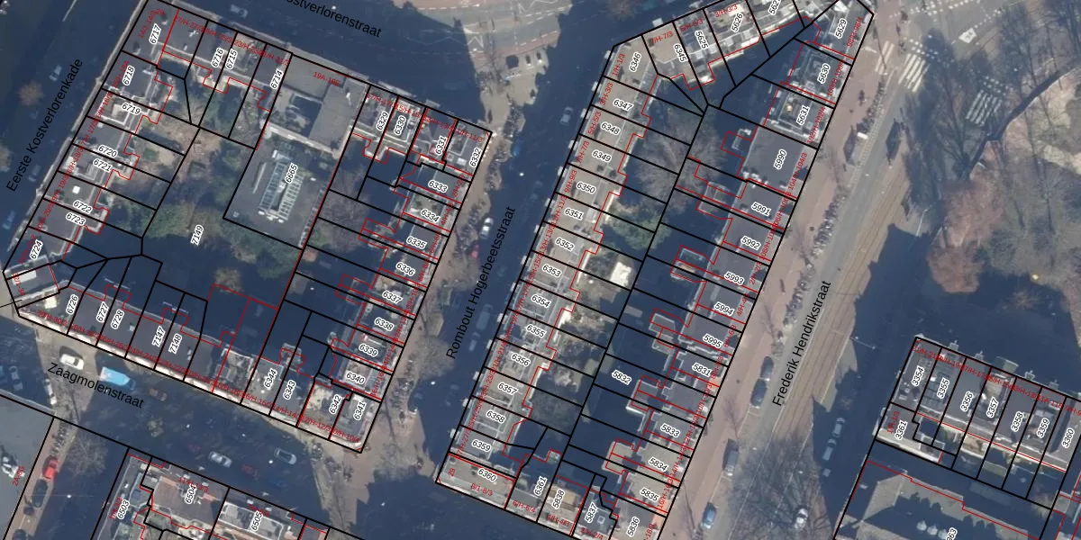 Het perceel waarop het adres ligt is ASD13-Q-6353. De afkorting 'ASD13' staat voor kadastrale gemeente Amsterdam. Het perceel is 115 m² groot. Dat is kleiner dan de gemiddelde perceeloppervlakte in Amsterdam, dat op 393,94 m² ligt. Het grootste perceel in de kadastrale gemeente is 6,2 ha. Het kleinste perceel heeft een oppervlakte van 1 m². Op het perceel zijn 4 adressen aanwezig. In de Basisregistratie Kadaster (BRK) werden de grenzen van het perceel geregistreerd op 23-01-2007.