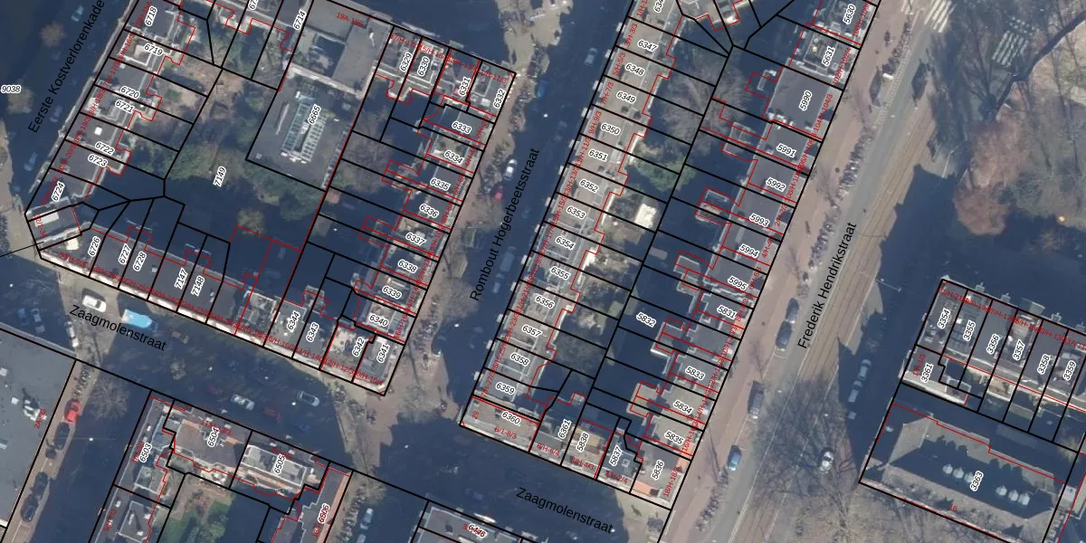 Het perceel waarop het adres ligt is ASD13-Q-6355. De afkorting 'ASD13' staat voor kadastrale gemeente Amsterdam. Het perceel is 115 m² groot. Dat is kleiner dan de gemiddelde perceeloppervlakte in Amsterdam, dat op 393,94 m² ligt. Het grootste perceel in de kadastrale gemeente is 6,2 ha. Het kleinste perceel heeft een oppervlakte van 1 m². Er zijn 5 adressen aanwezig op het perceel. In de Basisregistratie Kadaster (BRK) werden de grenzen van het perceel geregistreerd op 23-01-2007.