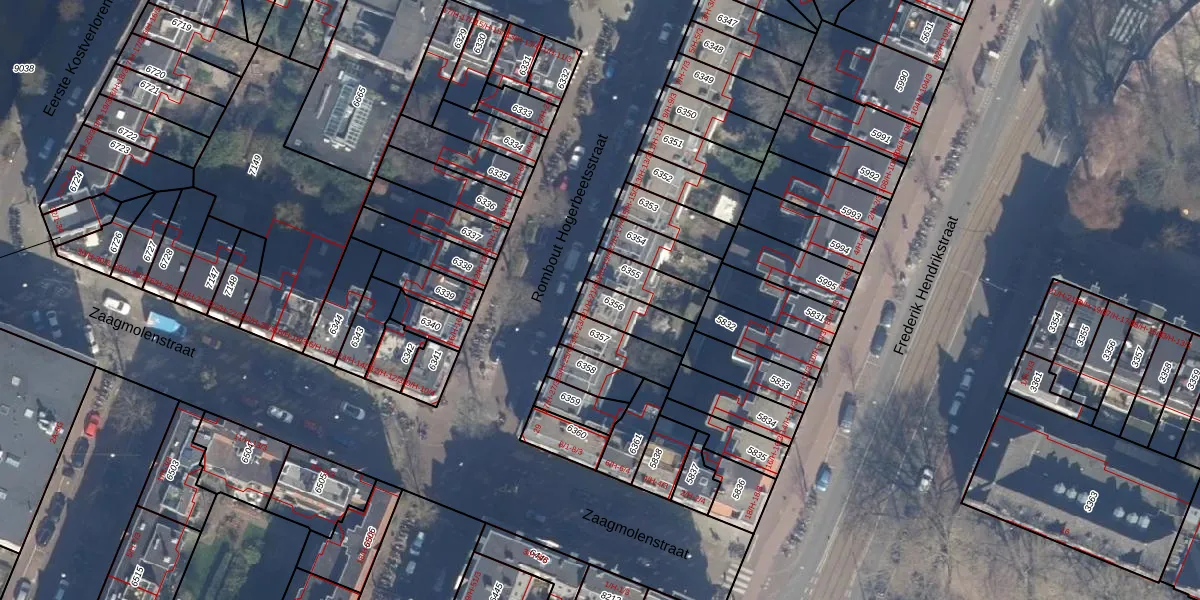 Het perceel waarop het adres ligt is ASD13-Q-6356. De afkorting 'ASD13' staat voor kadastrale gemeente Amsterdam. Het perceel is 115 m² groot. Dat is kleiner dan de gemiddelde perceeloppervlakte in Amsterdam, dat op 394,07 m² ligt. Het grootste perceel in de kadastrale gemeente is 6,2 ha. Het kleinste perceel heeft een oppervlakte van 1 m². Op het perceel zijn 5 adressen aanwezig. In de Basisregistratie Kadaster (BRK) werden de grenzen van het perceel geregistreerd op 23-01-2007.