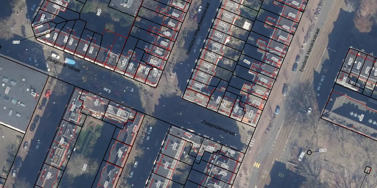 Het perceel waarop het adres ligt is ASD13-Q-6360. De afkorting 'ASD13' staat voor kadastrale gemeente Amsterdam. Het perceel is 84 m² groot. Dat is kleiner dan de gemiddelde perceeloppervlakte in Amsterdam, dat op 393,94 m² ligt. Het kleinste perceel in de kadastrale gemeente is 1 m² groot. De grootste perceeloppervlakte is 6,2 ha. Op het perceel zijn 4 adressen aanwezig. De huidige grenzen van het perceel zijn digitaal in de Basisregistratie Kadaster (BRK) geregistreerd op 23-01-2007.