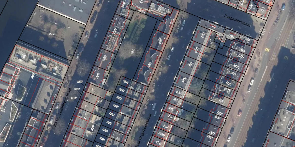 Het perceel waarop het adres ligt is ASD13-Q-6508. De afkorting 'ASD13' staat voor kadastrale gemeente Amsterdam. Het perceel is 296 m² groot. Dat is kleiner dan de gemiddelde perceeloppervlakte in Amsterdam, dat op 393,94 m² ligt. Het kleinste perceel in de kadastrale gemeente is 1 m² groot. De grootste perceeloppervlakte is 6,2 ha. Op het perceel zijn 16 adressen aanwezig. In de Basisregistratie Kadaster (BRK) werden de grenzen van het perceel geregistreerd op 23-01-2007.