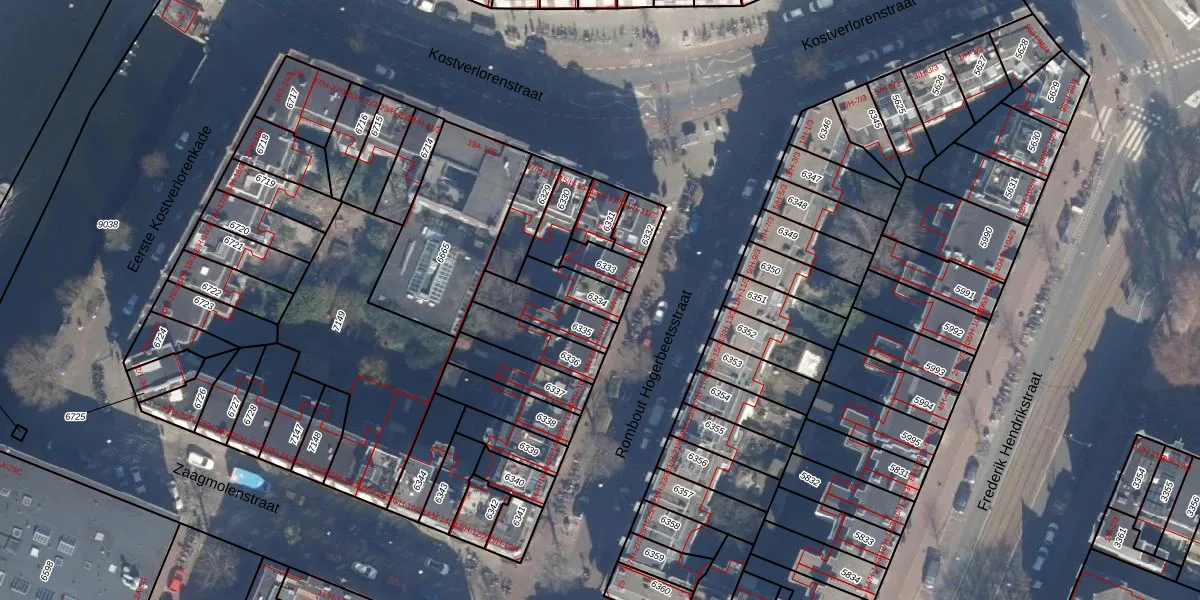 Het perceel waarop het adres ligt is ASD13-Q-6334. De afkorting 'ASD13' staat voor kadastrale gemeente Amsterdam. Het perceel is 98 m² groot. Dat is kleiner dan de gemiddelde perceeloppervlakte in Amsterdam, dat op 393,94 m² ligt. Het grootste perceel in de kadastrale gemeente is 6,2 ha. Het kleinste perceel heeft een oppervlakte van 1 m². Er zijn 4 adressen aanwezig op het perceel. De laatste wijziging in het de Basisregistratie Kadaster (BRK) was op 23-01-2007.
