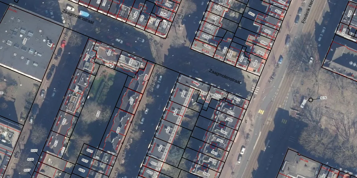 Het perceel waarop het adres ligt is ASD13-Q-6445. De afkorting 'ASD13' staat voor kadastrale gemeente Amsterdam. Het perceel is 180 m² groot. Dat is kleiner dan de gemiddelde perceeloppervlakte in Amsterdam, dat op 394,07 m² ligt. Het kleinste perceel in de kadastrale gemeente is 1 m² groot. De grootste perceeloppervlakte is 6,2 ha. Op het perceel liggen in totaal 8 adressen. De huidige grenzen van het perceel zijn digitaal in de Basisregistratie Kadaster (BRK) geregistreerd op 23-01-2007.