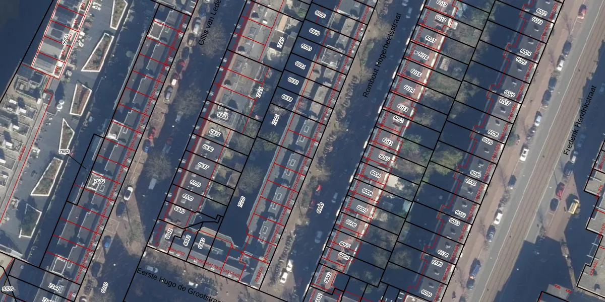 Het perceel waarop het adres ligt is ASD13-Q-7222. De afkorting 'ASD13' staat voor kadastrale gemeente Amsterdam. Het perceel is 240 m² groot. Dat is kleiner dan de gemiddelde perceeloppervlakte in Amsterdam, dat op 393,94 m² ligt. Het kleinste perceel in de kadastrale gemeente is 1 m² groot. De grootste perceeloppervlakte is 6,2 ha. Op het perceel liggen in totaal 8 adressen. De huidige grenzen van het perceel zijn digitaal in de Basisregistratie Kadaster (BRK) geregistreerd op 23-01-2007.