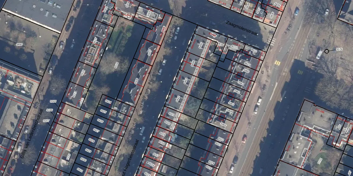 Het perceel waarop het adres ligt is ASD13-Q-6443. De afkorting 'ASD13' staat voor kadastrale gemeente Amsterdam. Het perceel is kleiner dan gemiddeld in Amsterdam. Het perceel is 212 m² groot, terwijl het gemiddelde ligt op 393,94 m². De grootste perceeloppervlakte in de kadastrale gemeente is 6,2 ha. De kleinste oppervlakte bedraagt 1 m². Op het perceel liggen in totaal 8 adressen. In de Basisregistratie Kadaster (BRK) werden de grenzen van het perceel geregistreerd op 23-01-2007.