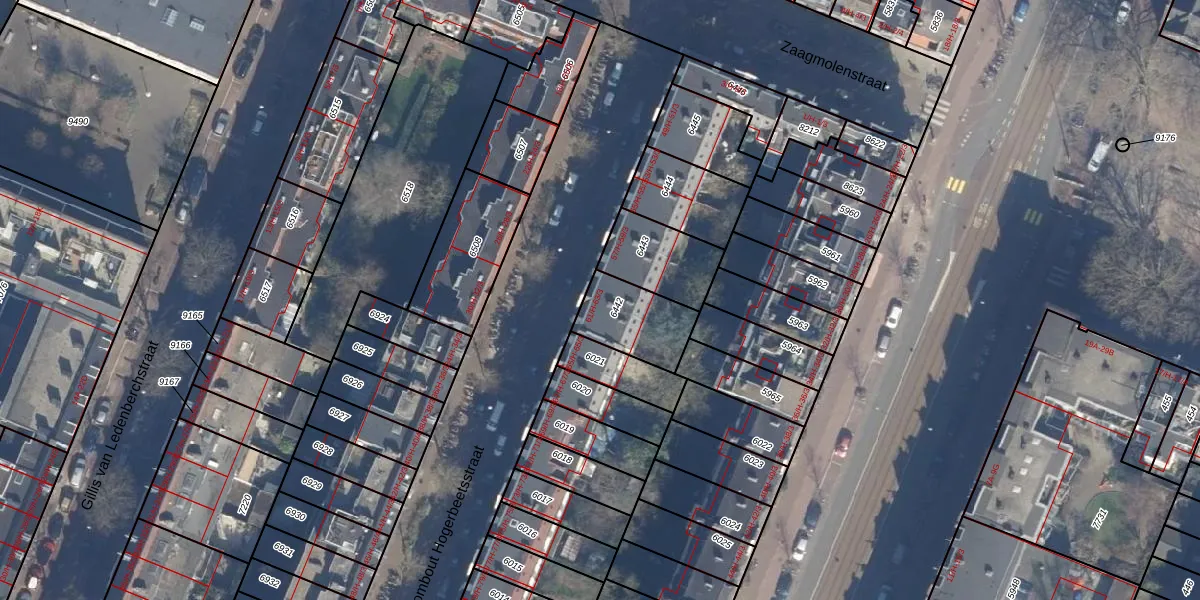 Het perceel waarop het adres ligt is ASD13-Q-6442. De afkorting 'ASD13' staat voor kadastrale gemeente Amsterdam. Het perceel is kleiner dan gemiddeld in Amsterdam. Het perceel is 209 m² groot, terwijl het gemiddelde ligt op 393,94 m². De grootste perceeloppervlakte in de kadastrale gemeente is 6,2 ha. De kleinste oppervlakte bedraagt 1 m². Er zijn 8 adressen aanwezig op het perceel. De laatste wijziging in het de Basisregistratie Kadaster (BRK) was op 23-01-2007.